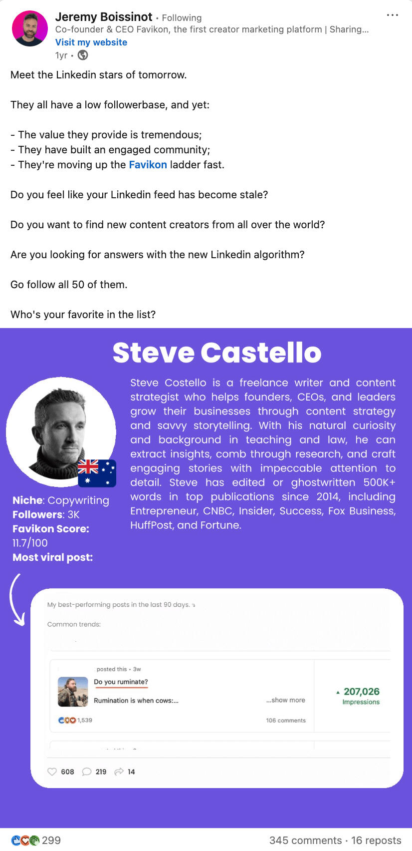 Favikon LinkedIn Star of Tomorrow (July 2023)